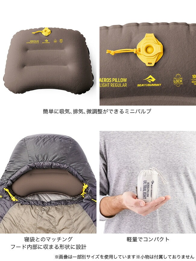 スリーピングバッグのフード内部に収まる形状に設計されており、安定した寝心地を提供します。