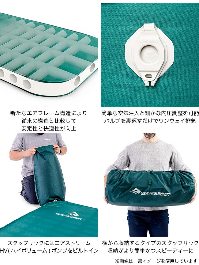 ・スタッフサックにはエアストリームHV(ハイボリューム)ポンプをビルトインし、自動膨張後の給気が簡単に