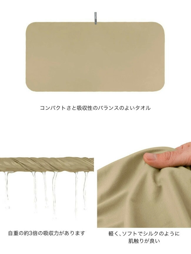 シリーズ中でエアライトタオルに次ぐ軽量コンパクトさで、自重の約3倍の吸収力があります。軽くソフトでシルクのように肌触りが良く、速乾性にも優れ、絞った後にすぐに使用できます。