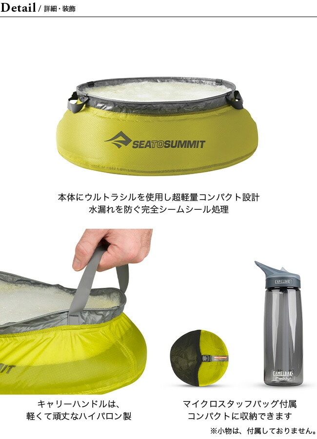 本体にウルトラシル、ハンドルにハイパロンを使用、ポケットサイズにまで収納できる軽量コンパクトなシンク。