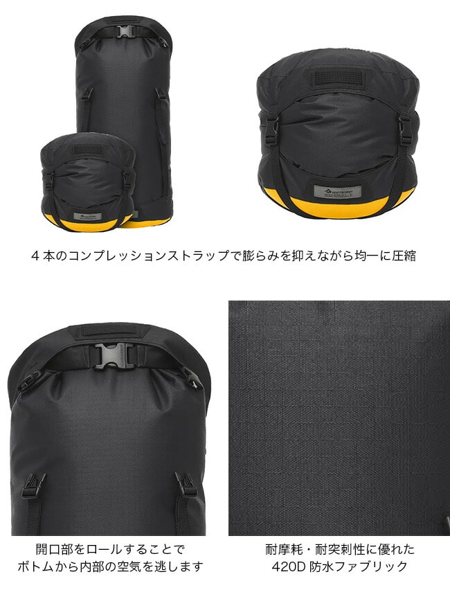 本体生地には耐摩耗・耐突刺性に優れた420D防水ファブリック、ボトムには防水性を保ちながら空気だけを逃がす500D CORDURA® eVac®素材を採用。