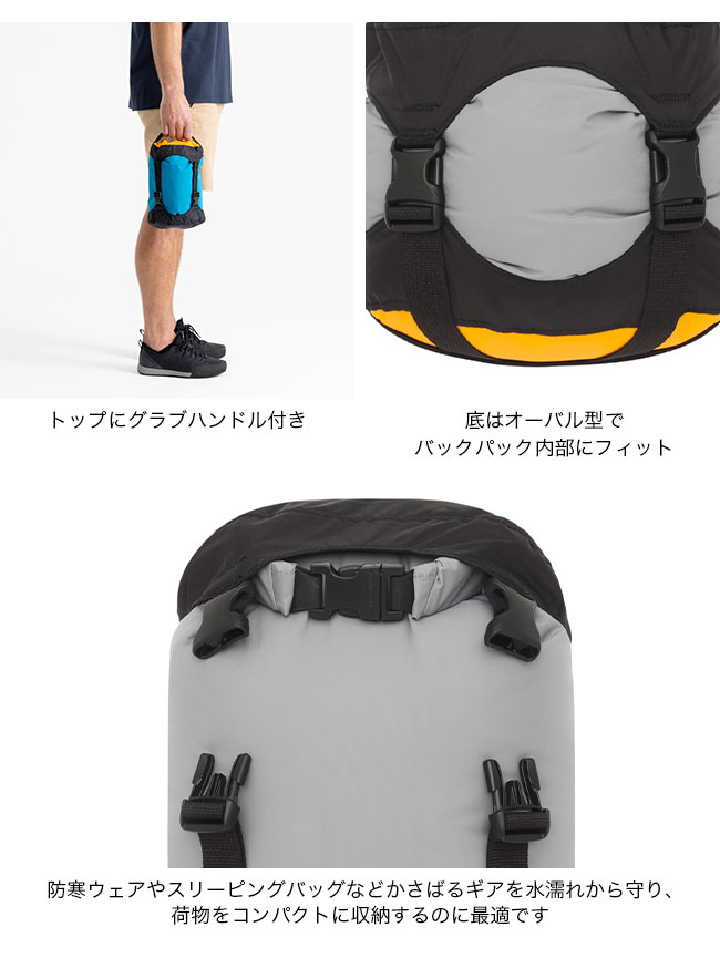 防寒ウェアやスリーピングバッグなどかさばるギアを水濡れから守り、荷物をコンパクトに収納するのに最適です。