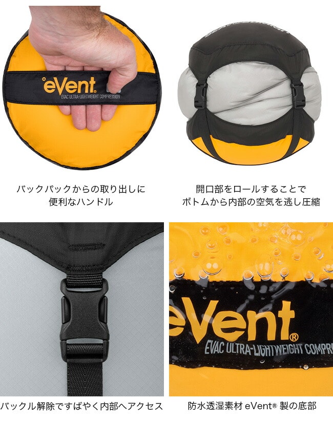 ・内部の空気は押し出し、水分の浸入は防ぐ防水透湿素材 eVent®製の底部
