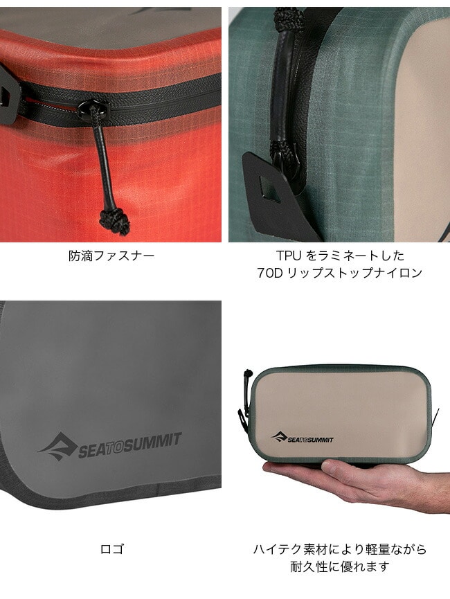 本体はTPUをラミネートした70Dリップストップナイロン。パネルの合わせ目は高周波溶着で防滴ファスナーと相まって高い耐水性能を誇ります。
