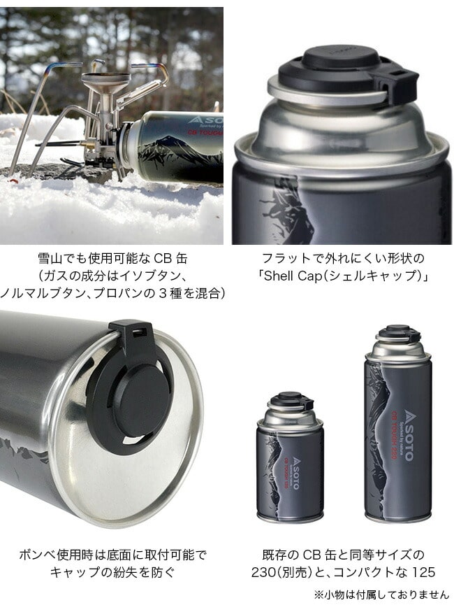 また、耐圧容器(ボンベ)を使用することで気温が高くなる夏場でも安全に持ち運べ、OD缶よりもリーズナブルな価格でありながら、SOTOのOD缶と同等の環境でガス器具の使用が可能になりました。