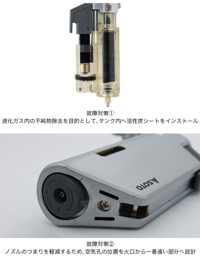 性能面においても妥協がなく、ガスタンク内への活性炭のインストールと空気孔の位置変更を実施し、製品の耐久性を高めました。