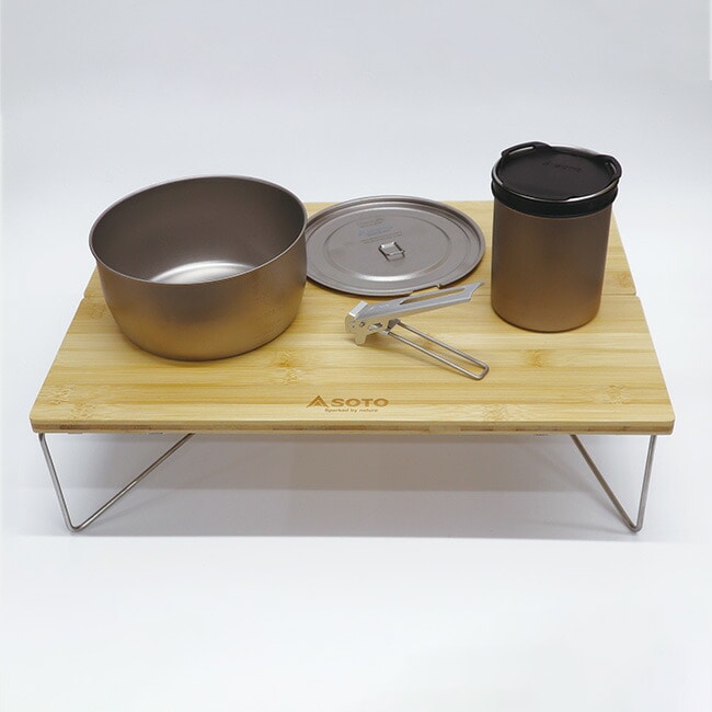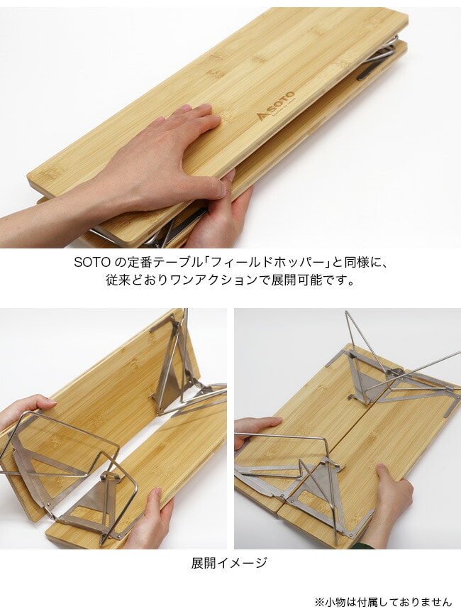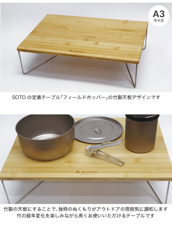 SOTOの定番テーブル「フィールドホッパー」が、竹製天板デザインで期間限定登場。