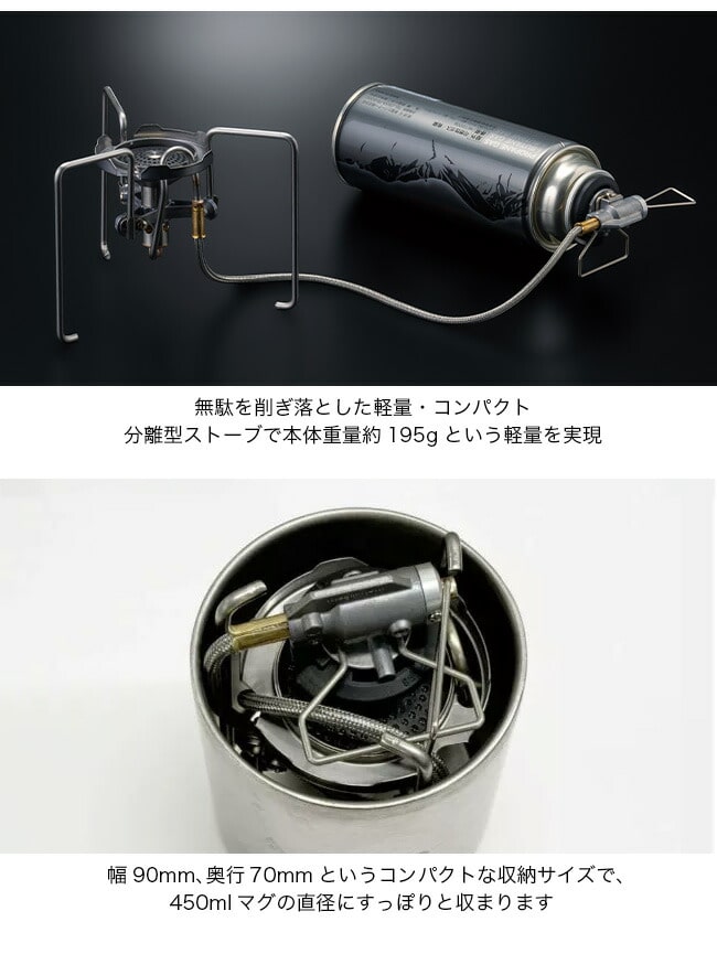 軽量&コンパクト収納を実現し、山岳使用に対応したCB缶モデルの液出し分離型ストーブ。
