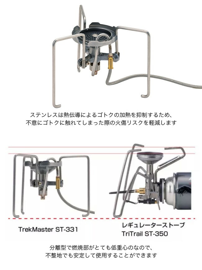 軽登山やキャンプなど、そこまでガスのスペックが必要ないシーンでは安価なレギュラーガス ST-700を使用するなど、用途に合わせて燃料の使い分けをすることでコストパフォーマンスにも優れています。