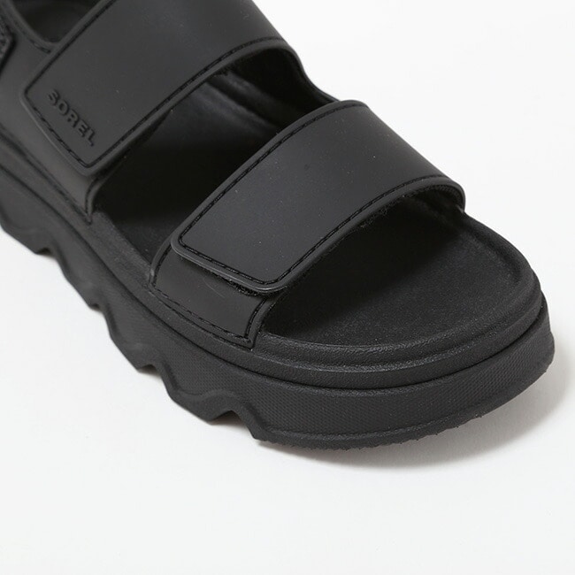 厚みのある約4cmのプラットフォームながら、フラットに近い安定感のある履き心地が魅力のサンダル。丸みのあるトウ形状で足の指まわりにゆとりがあり、リラックスして着用できます。