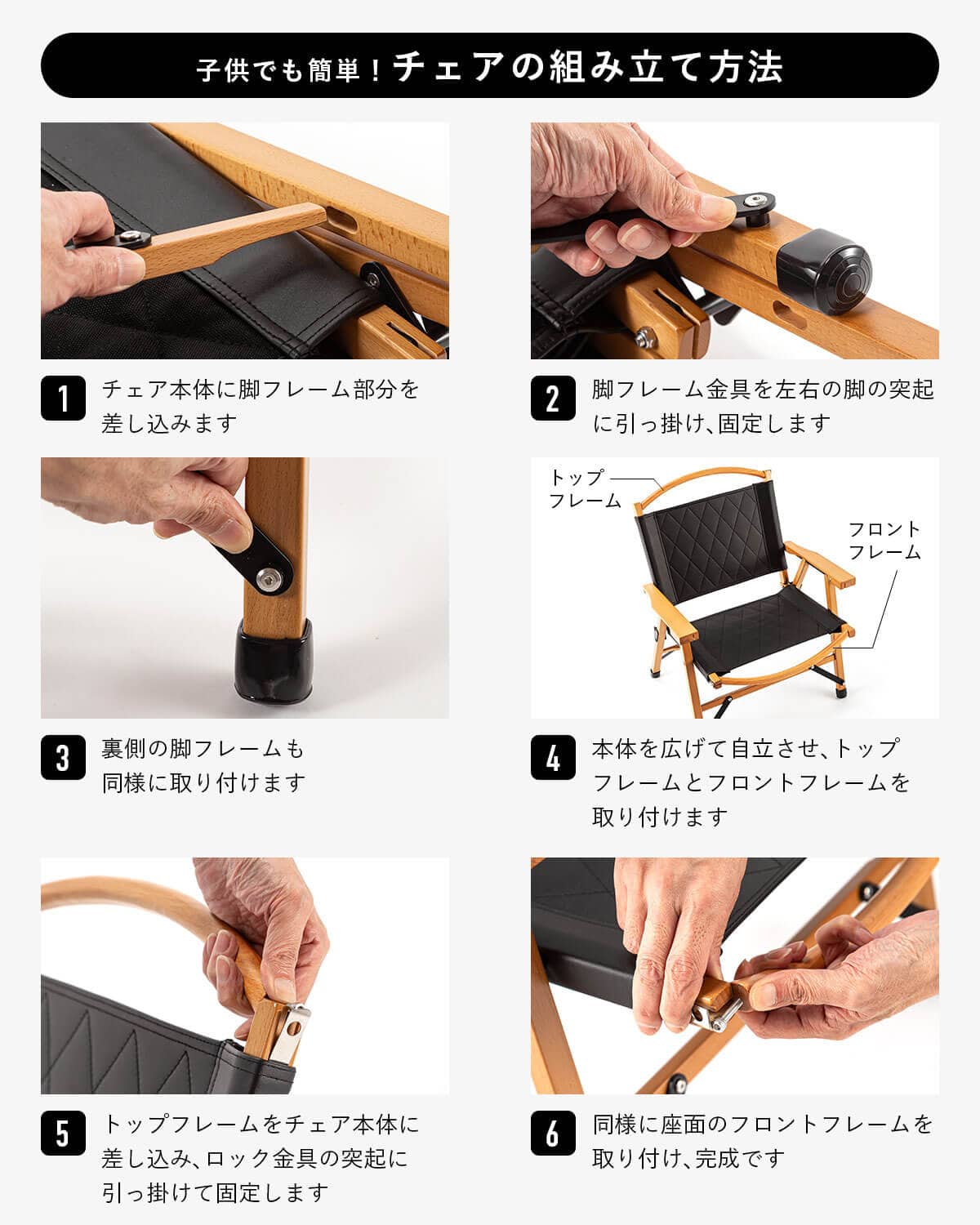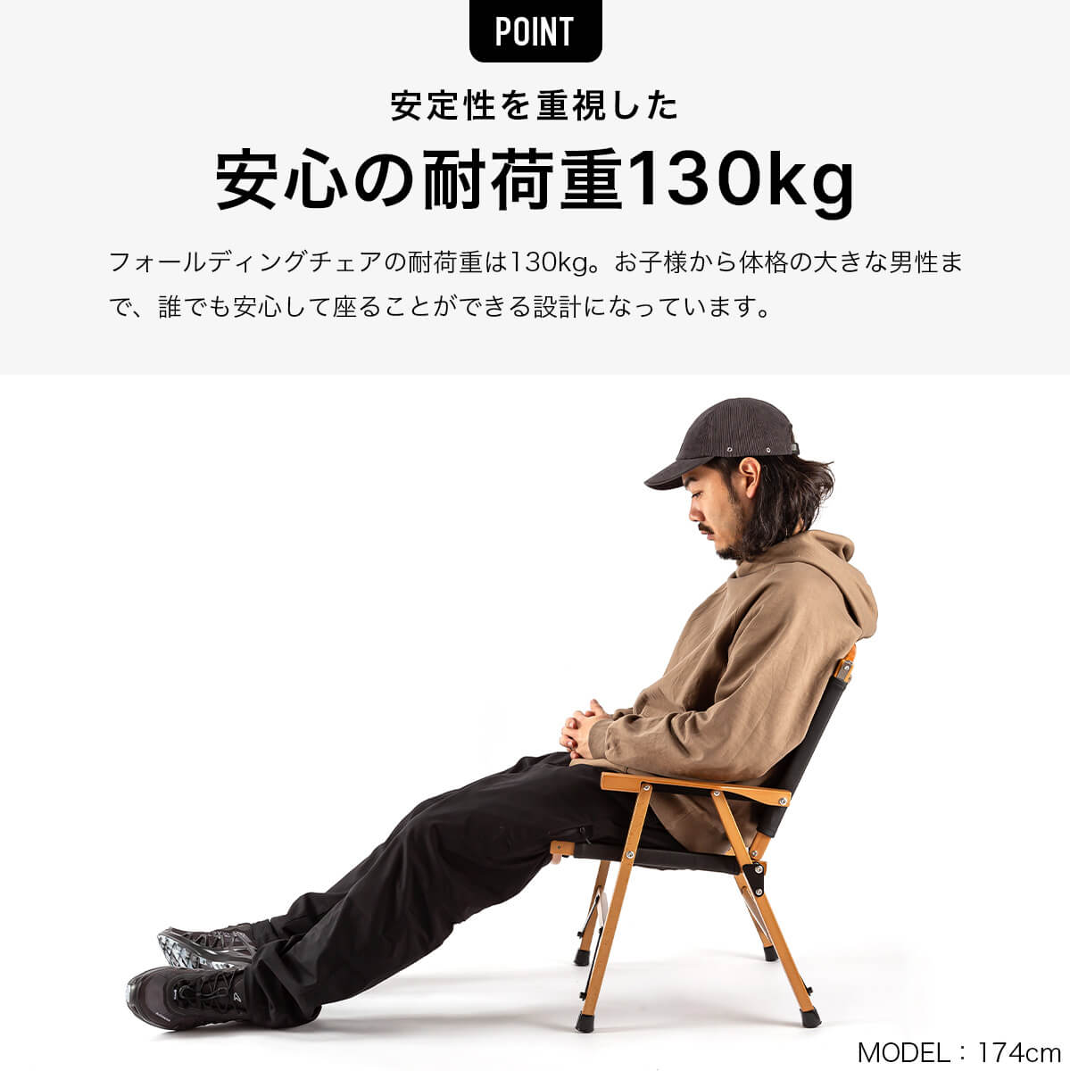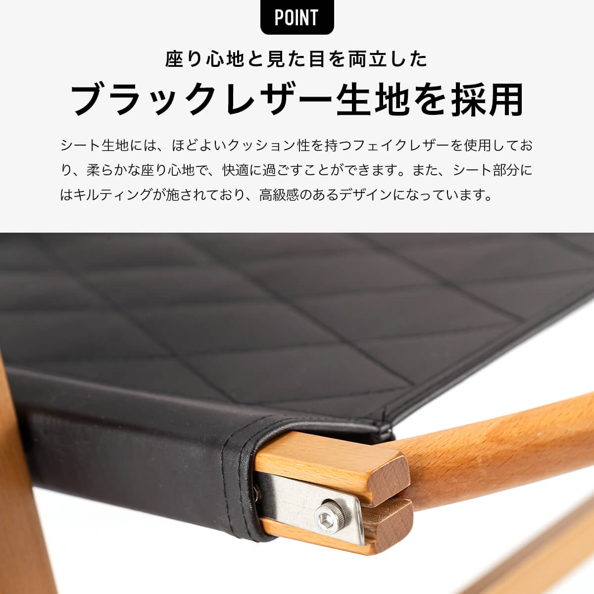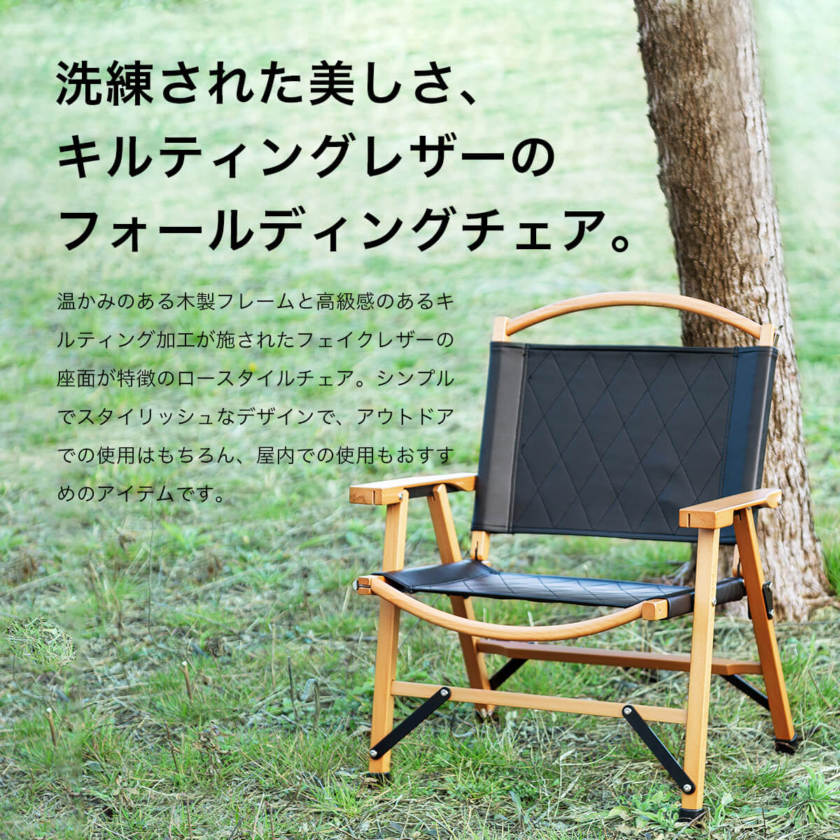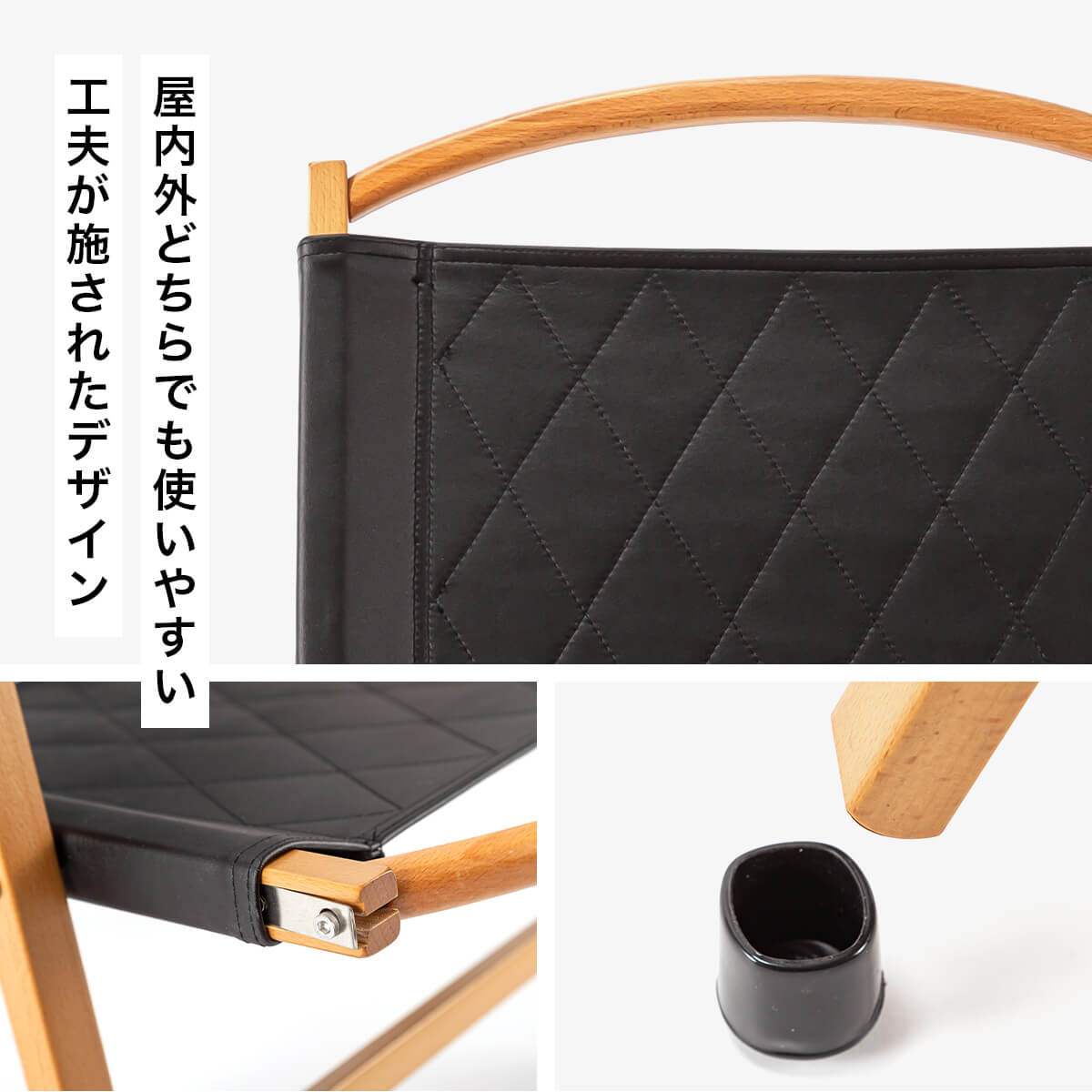 また、落ち着いた色味の木製フレームは高級感があり、チェアをキャンプサイトやお部屋に置くだけで、インテリアのアクセントになります。