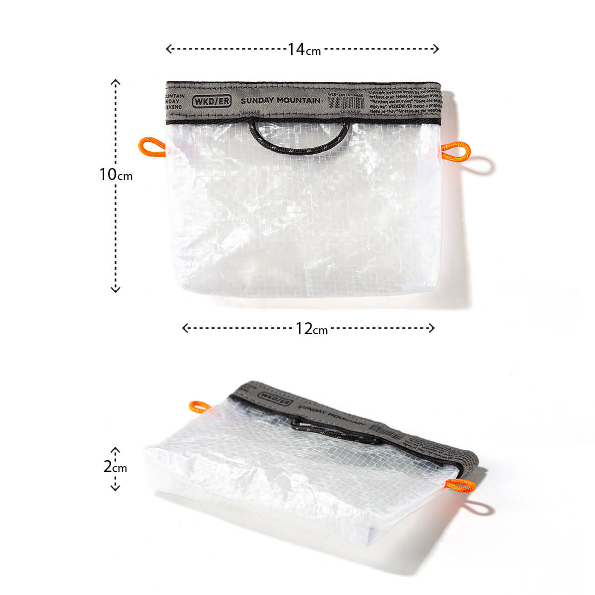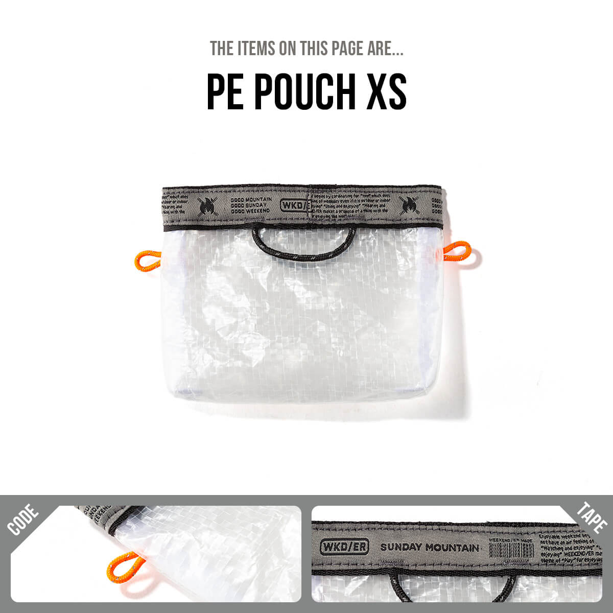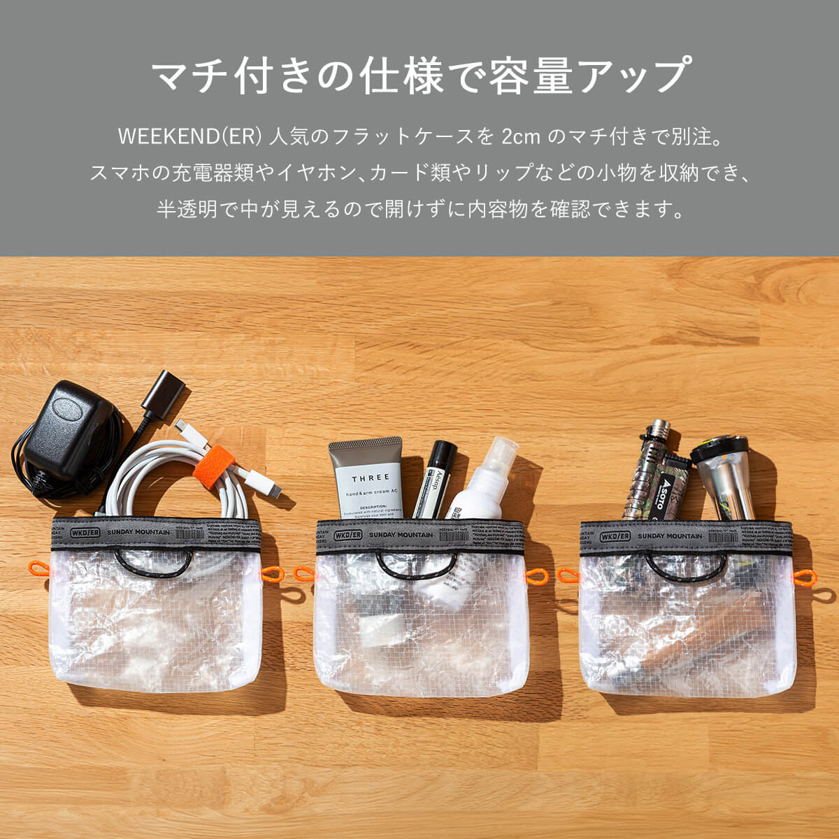SUNDAY MOUNTAINが、マチ付きの仕様にした上でテープ部分をオリジナルデザインのグレーに、ループコードをオレンジに別注しました。
