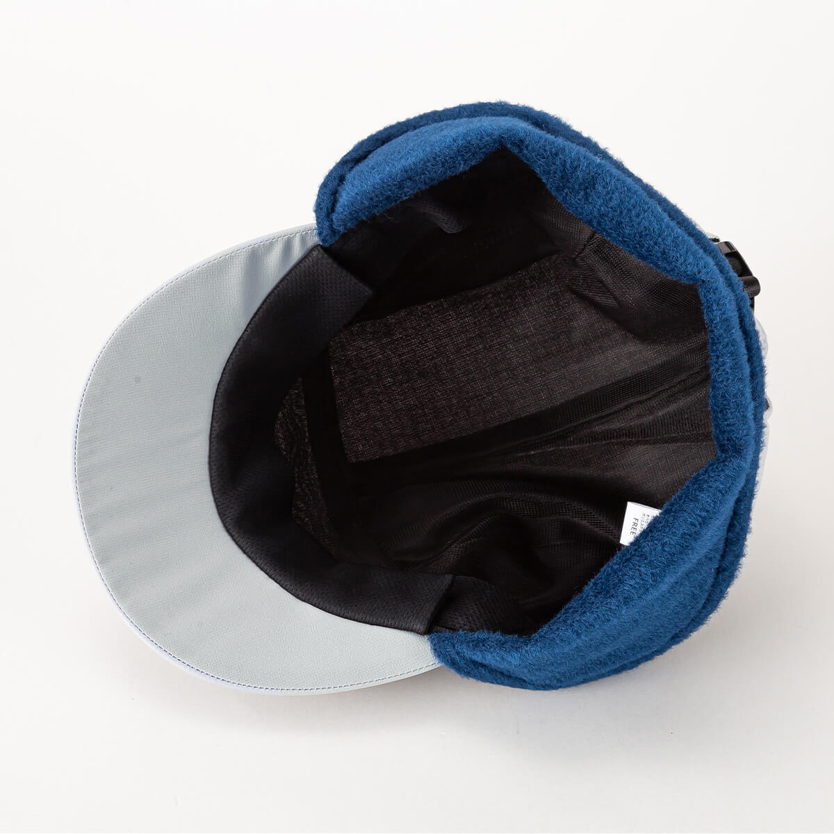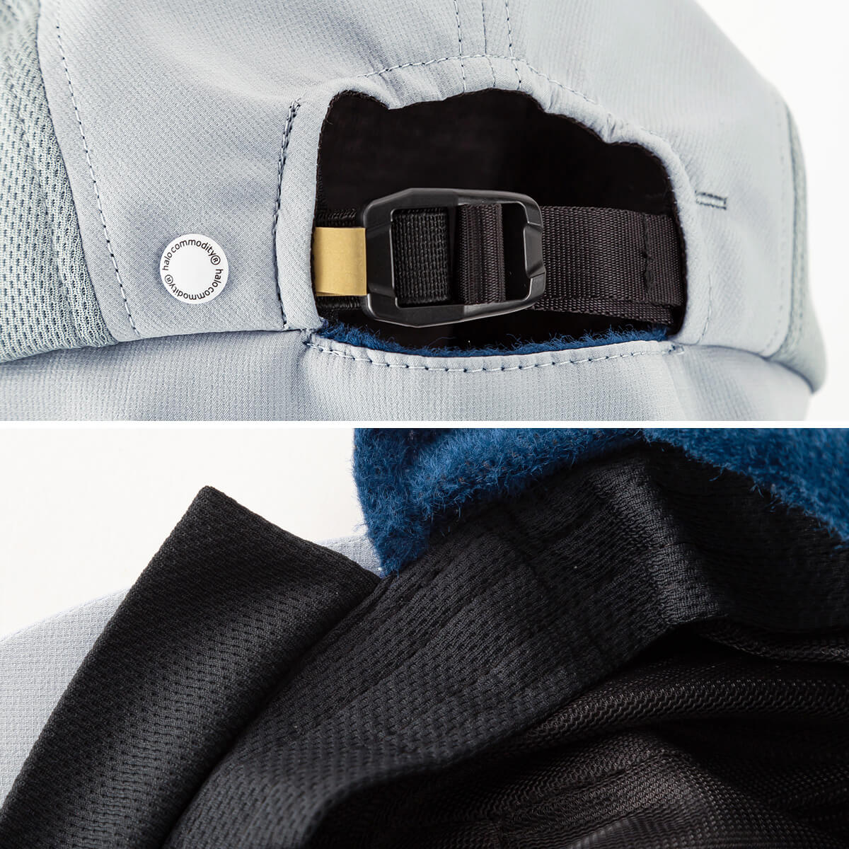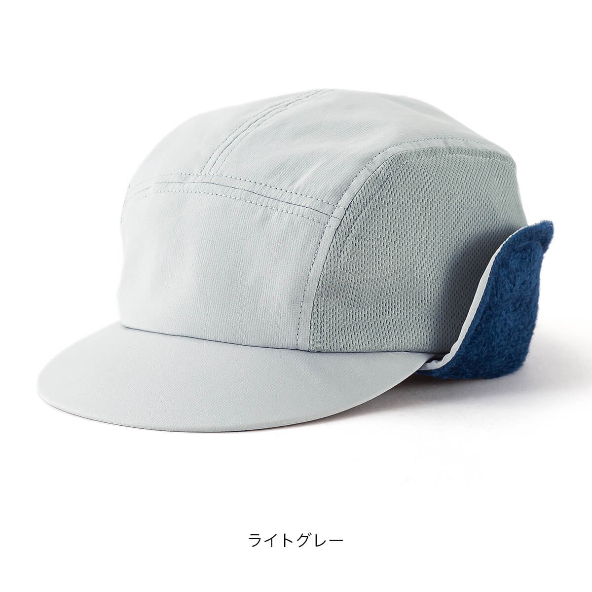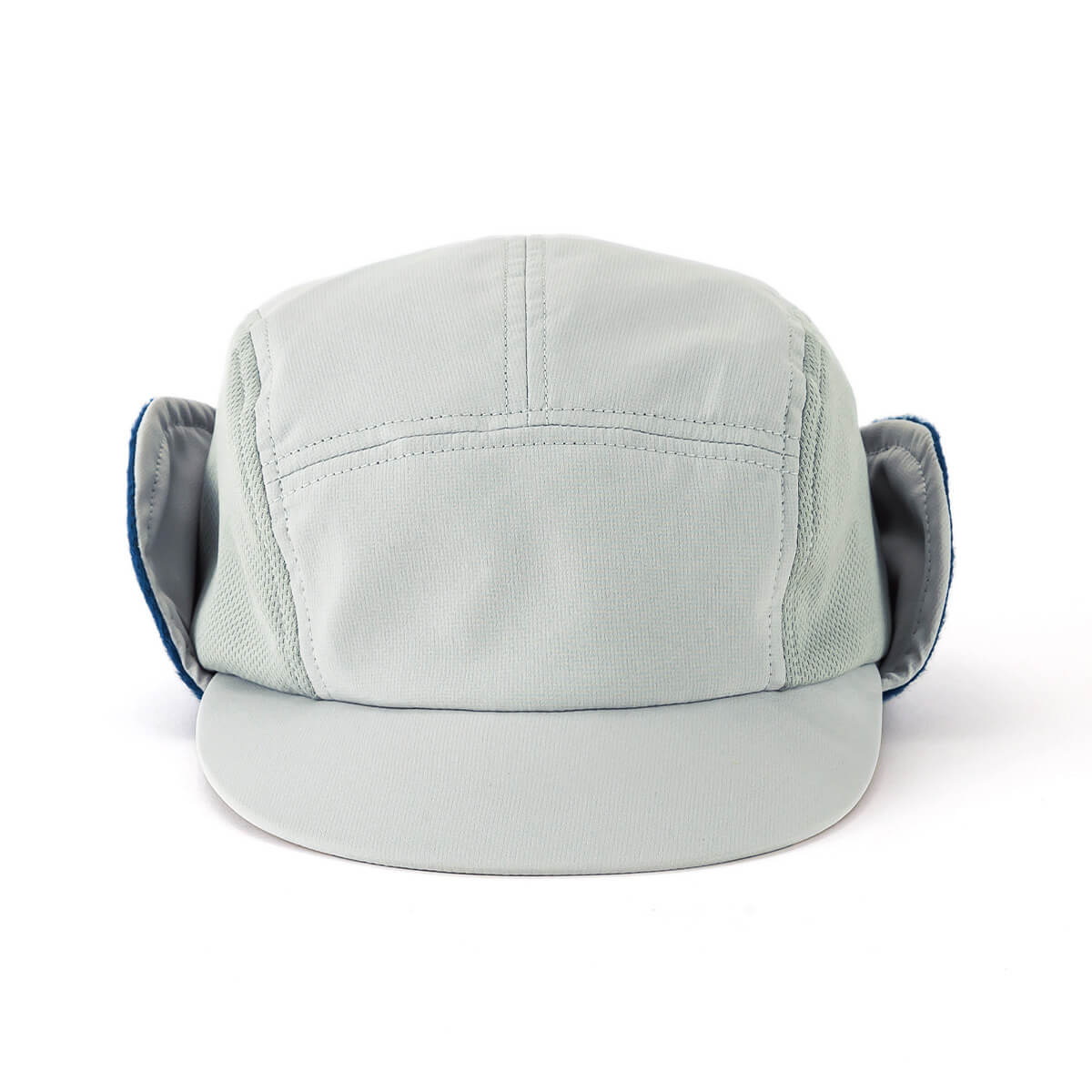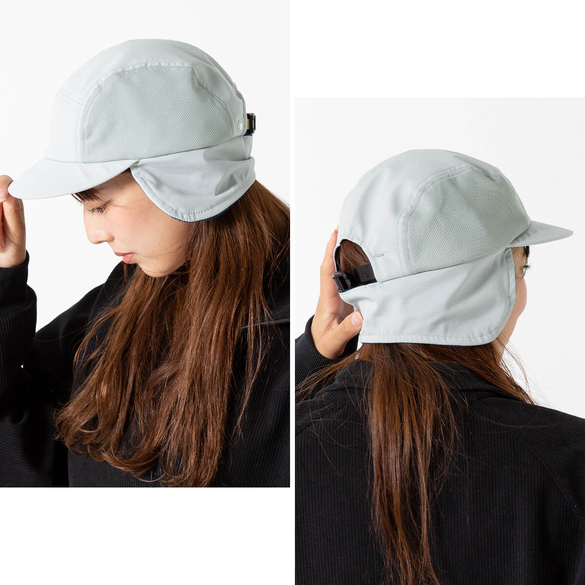 Octa®を耳あてに、サイド部分には抗菌防臭・制菌、吸水速乾性のあるメッシュ素材を採用した、SUNDAY MOUNTAIN別注カラーのキャップです。どんなカラーのお洋服にも合わせやすい明るめのグレーをベースに、耳あて部分はアウトドアシーンで映えるブルーを差し色に選びました。