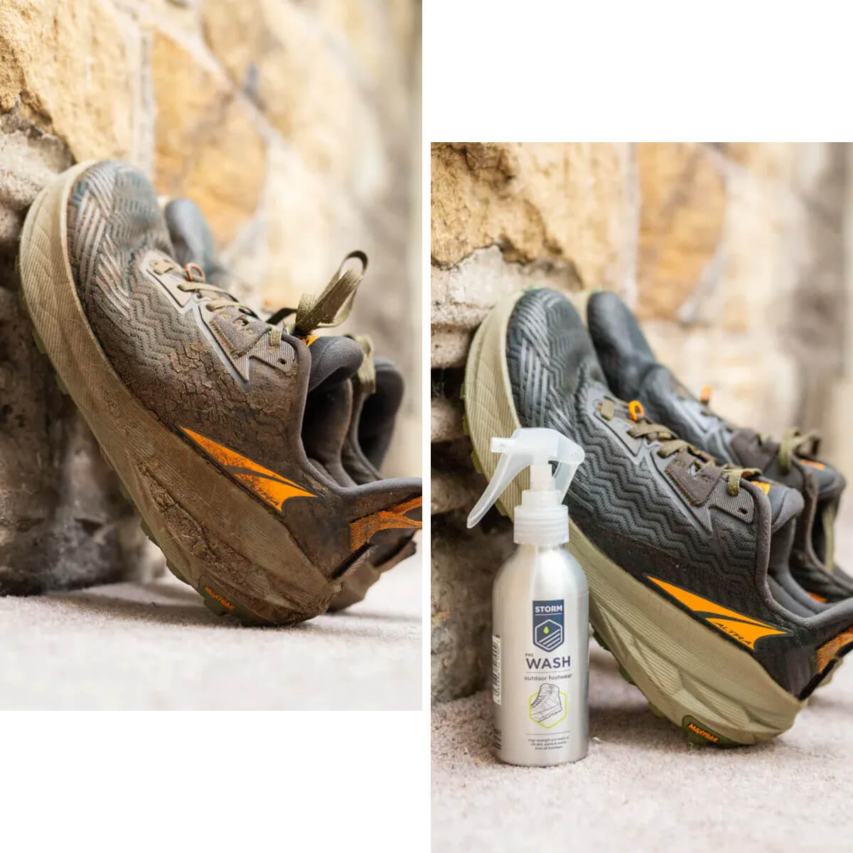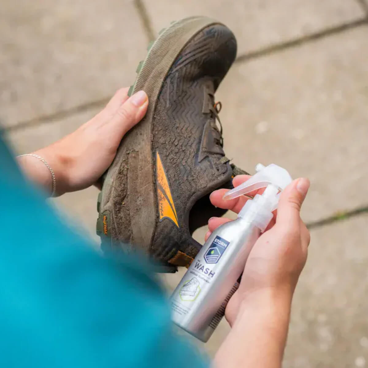 プレウォッシュクリーナーは、アクティブなDWR(耐久撥水)性能を損なうことなく、汚れ・シミ・泥をしっかり落とし、必要に応じてその後の処理のために表面を整えるプレクリーナーです。必要に応じて、フットウェアプルーファー(別売)を併用してください。