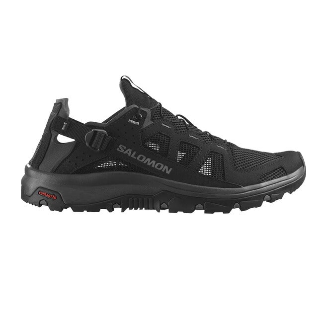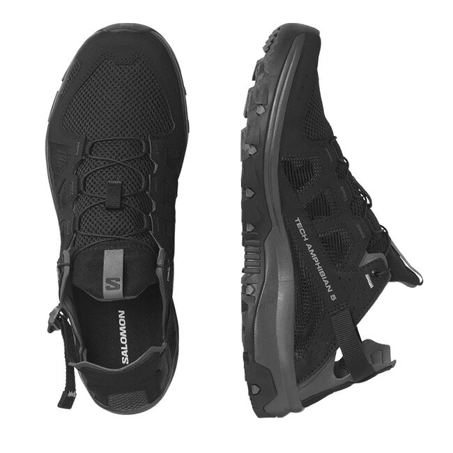 TECHAMPHIBIAN 5 は補強トゥキャップと完全縫合構造により足を確実に保護。アウトソールが地面に密着し、濡れた滑りやすい地面でも信頼できるグリップを発揮します。