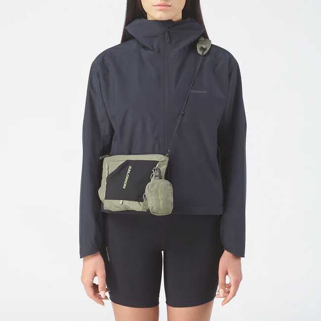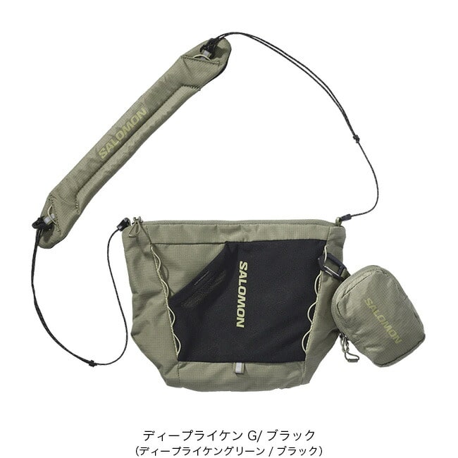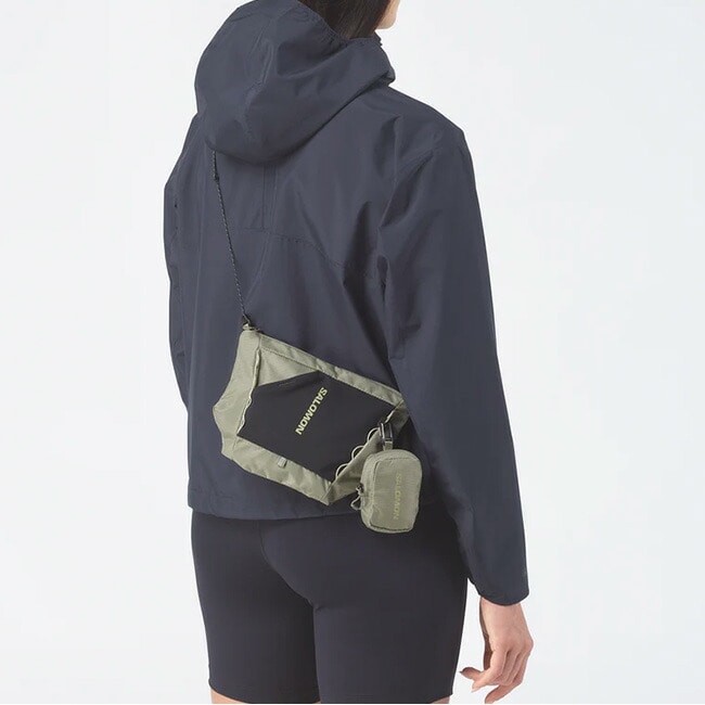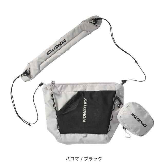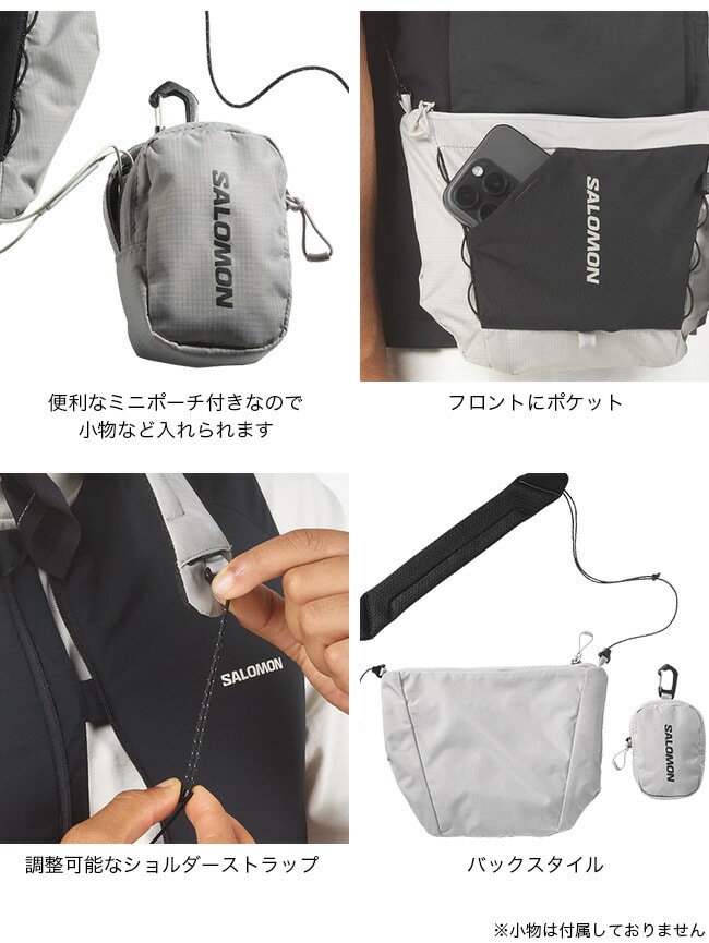 メインコンパートメントをはじめ、外側のメッシュポケットやミニポーチなど複数の収納スペースを備え、スマホ・イヤフォンなどの必需品を整理して収納できます。