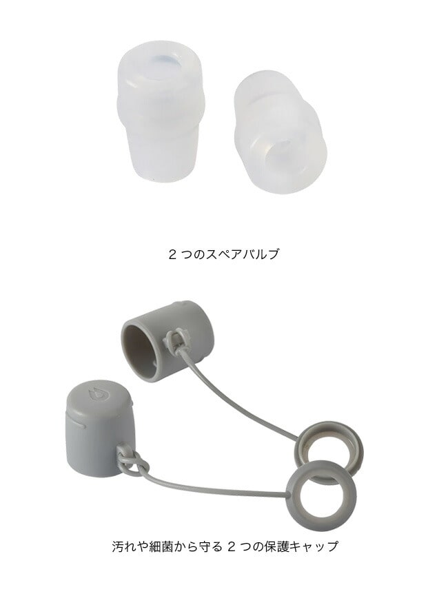 SOFT VALVE COVER は、ソフトフラスクやブラッダーを長く愛用していただくための交換キットです。2 つのスペアバルブと、汚れや細菌から守る 2 つの保護キャップが付いています。