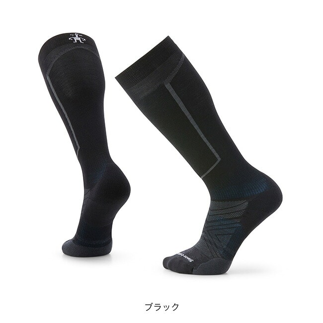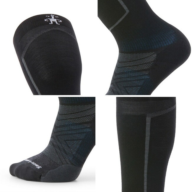 すね、くるぶし、かかとのみクッションを配したフィット感優先の薄手のスキーソックス。