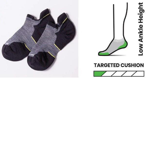 ロードにもトレイルにも対応するソックス。つま先と踵にクッションを配置し、通気性と耐久性のバランスに優れます。