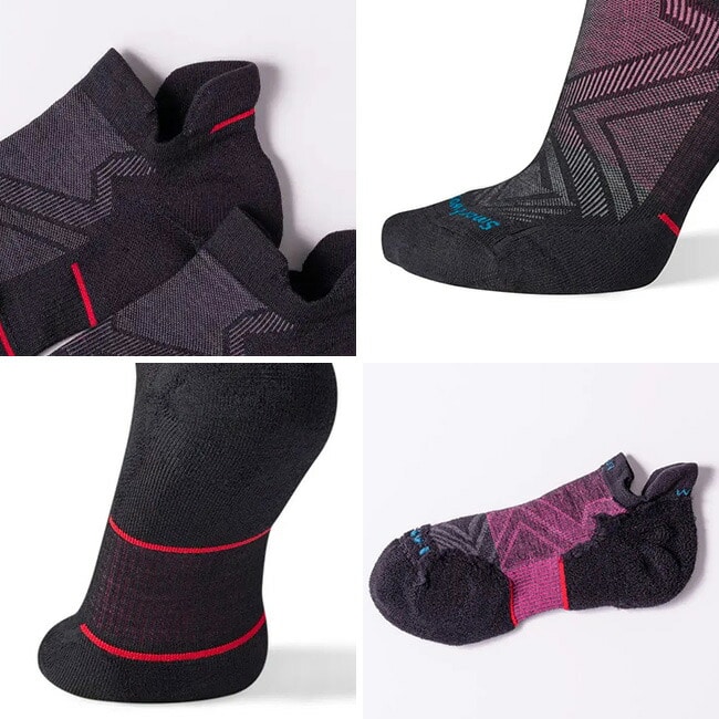 ロードにもトレイルにも対応するソックス。つま先と踵にクッションを配置し、通気性と耐久性のバランスに優れます。