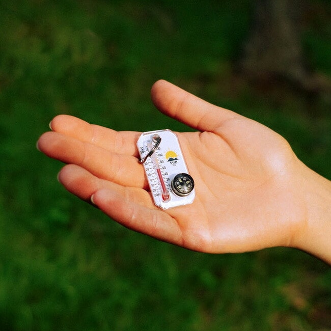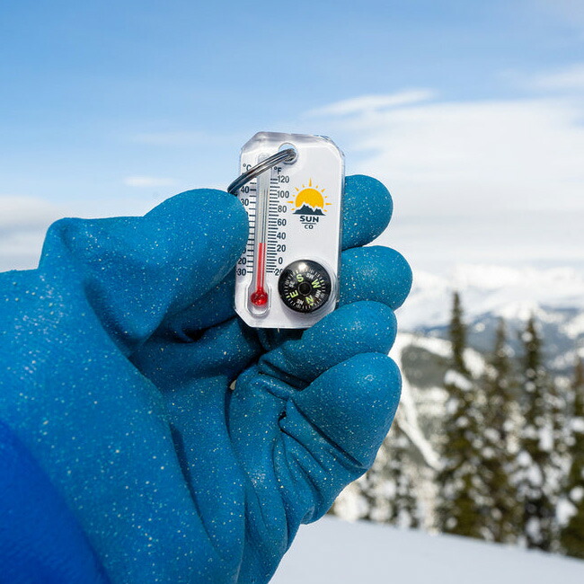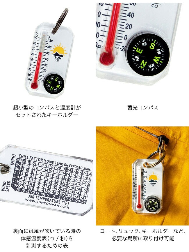ジャケットやバックパックのジッパーに取り付けておくと意外な時に役立ちます。華氏(°F)と摂氏(℃)で表記されているので、どこの国でも温度を共通認識できます。