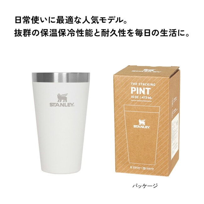 真空ステンレス鋼を使用した耐久性に優れたパイントグラス。氷が溶けにくく、長時間冷たさをキープするので、アウトドア時に活躍します。