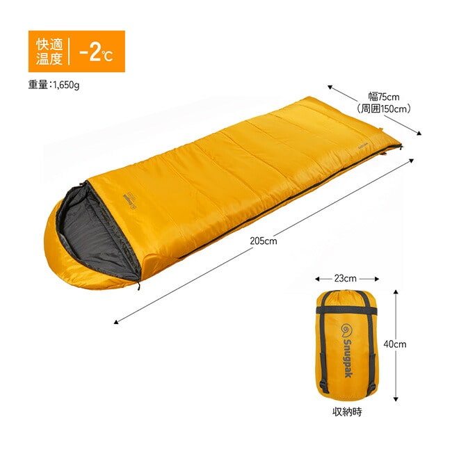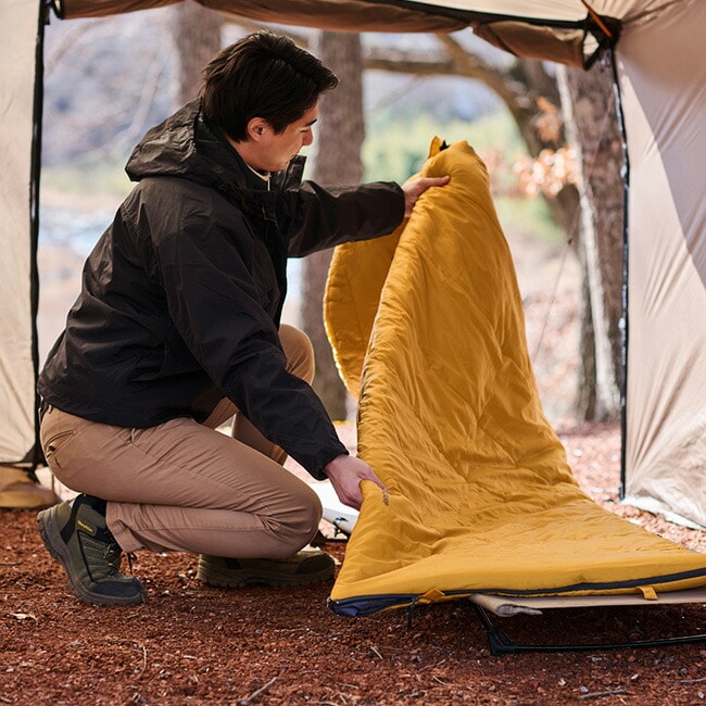 従来モデルより長さを220cmから205cmに、幅を80cmから75cmに調整し、よりフィット感のあるサイズ感を実現しました。スクエア型でありながら密閉性が高く、優れた保温性と包み込まれるような安心感を得られます。