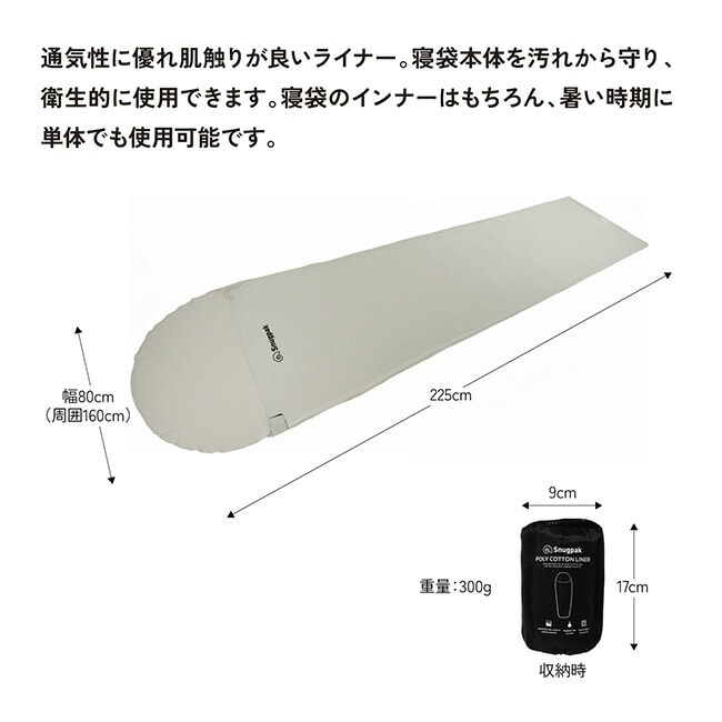・寝袋のインナーとしてはもちろん、暑い時期には単独でも使用可能