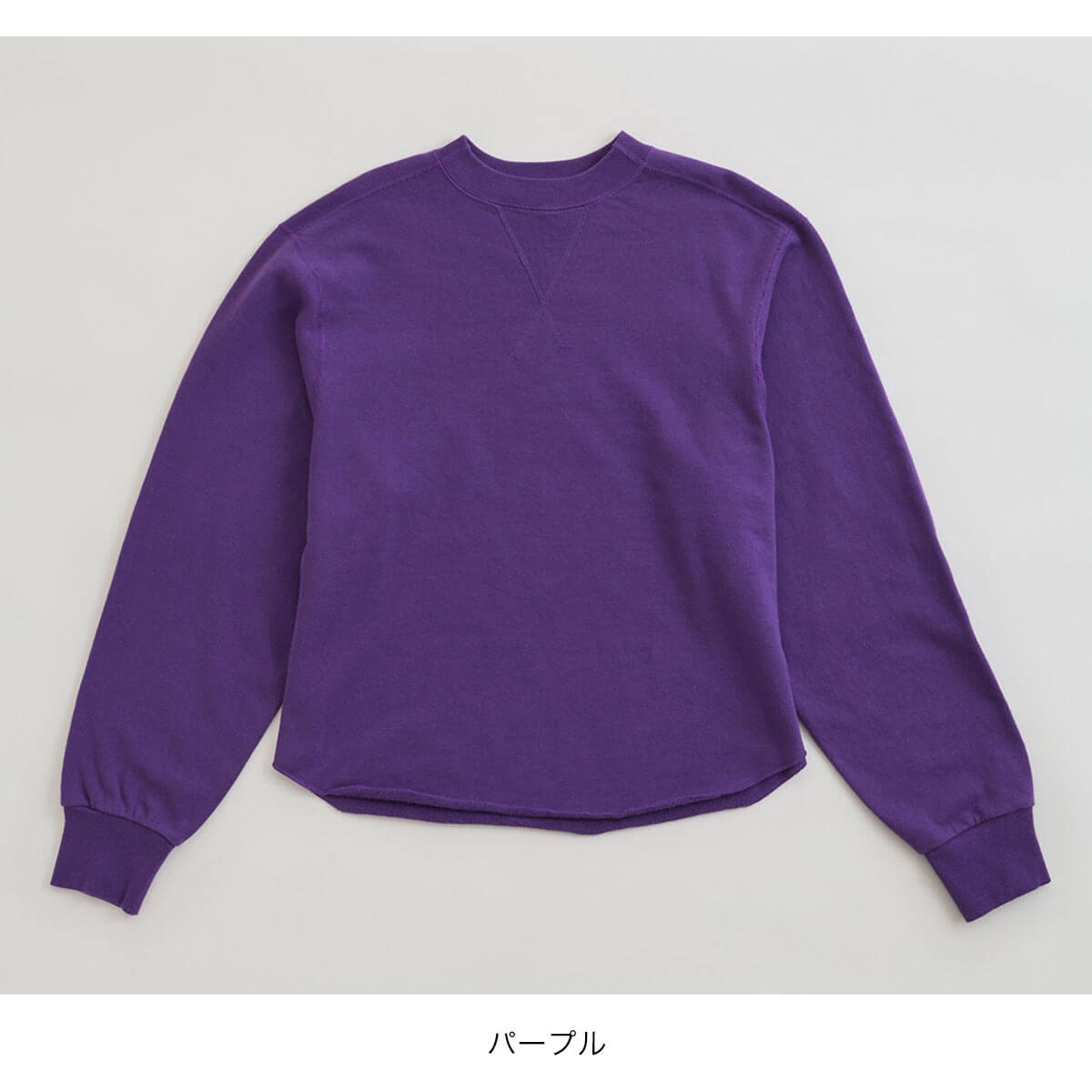 ボトムインできるスウェットを作りたくて、薄手の生地からオリジナルで作ったガゼットスウェット。インすることを前提に作っているので、裾にはリブをつけず、ボトムの中で生地がゴロつくのを軽減しています。