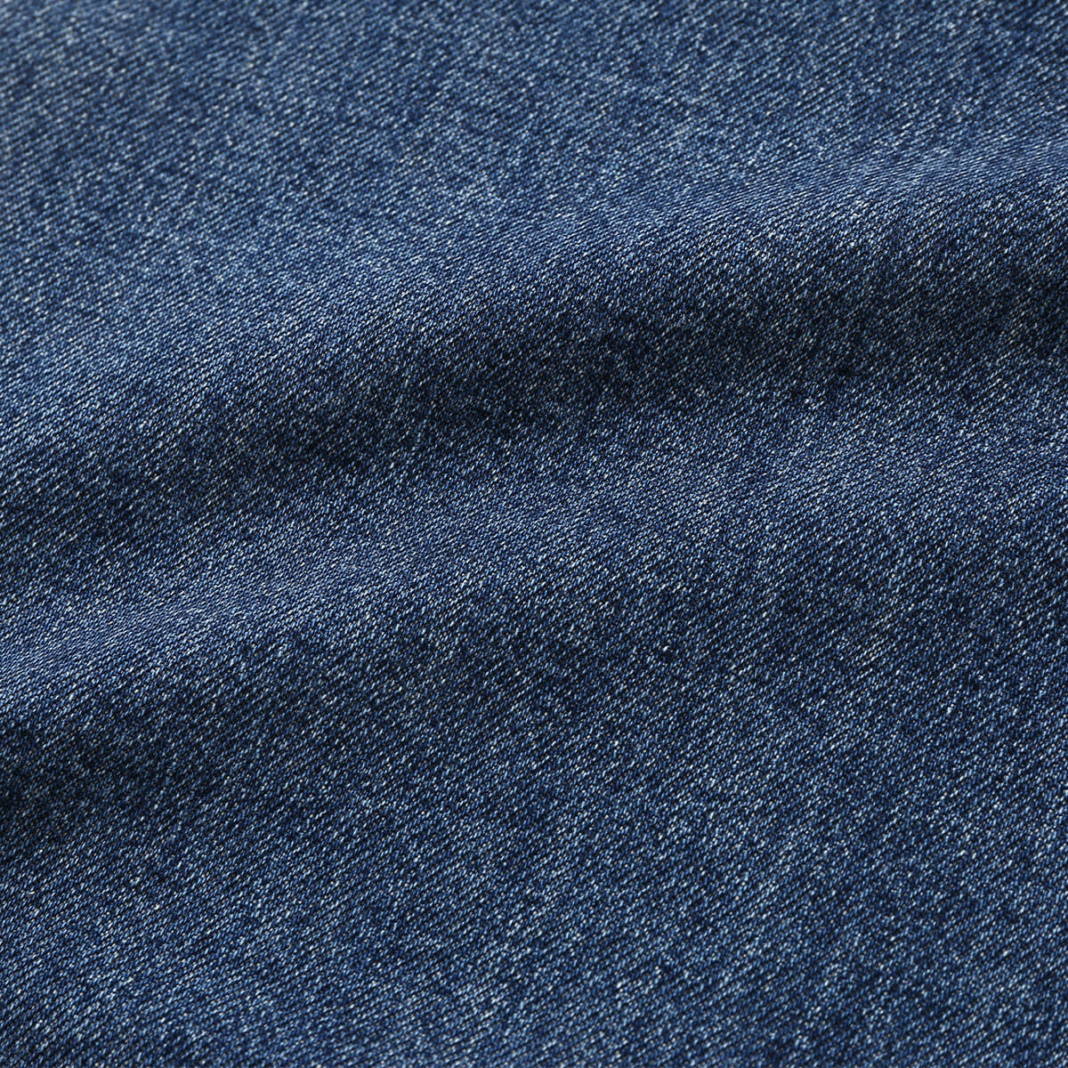 どんなアイテムにも合わせやすいこと、また永く履いていただくために素材選びにもこだわりました。通常デニム生地は経糸にインディゴ、緯糸に白を組み合わせて織りますが、このデニムでは緯糸にスーパーゼロという糸を使用しています。