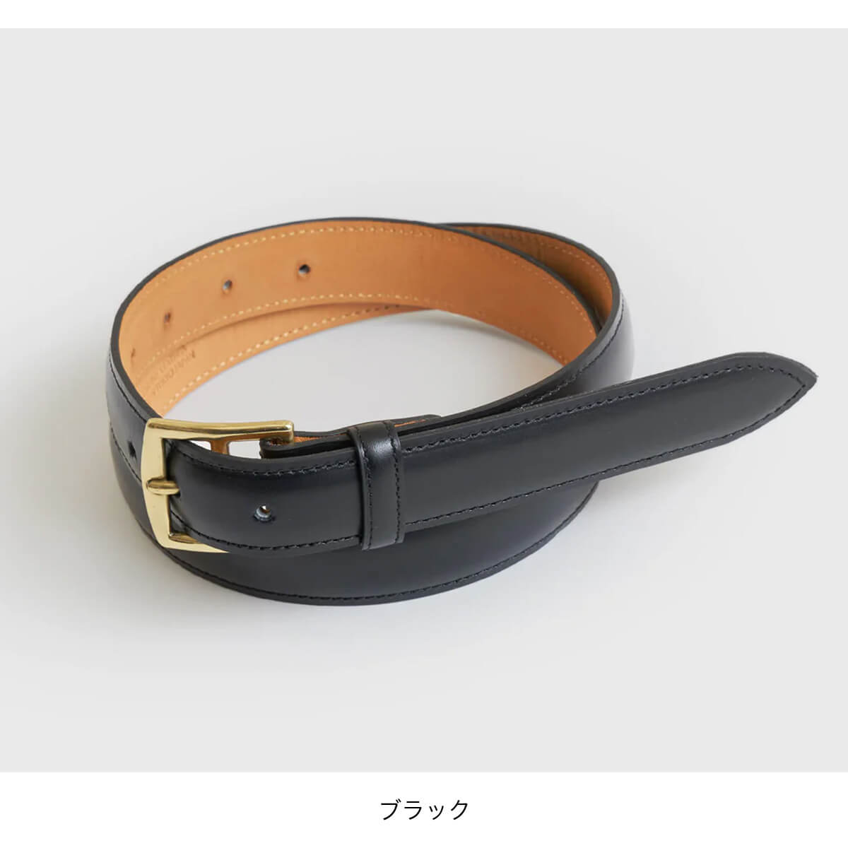 メンズライクなパンツに合わせてほしいから、無骨になりすぎないように、少し丸みのあるベルトがいいなと思ったからです。真鍮のバックルとの相性もよく、いろいろなテイストのボトムに合わせやすいと思います。