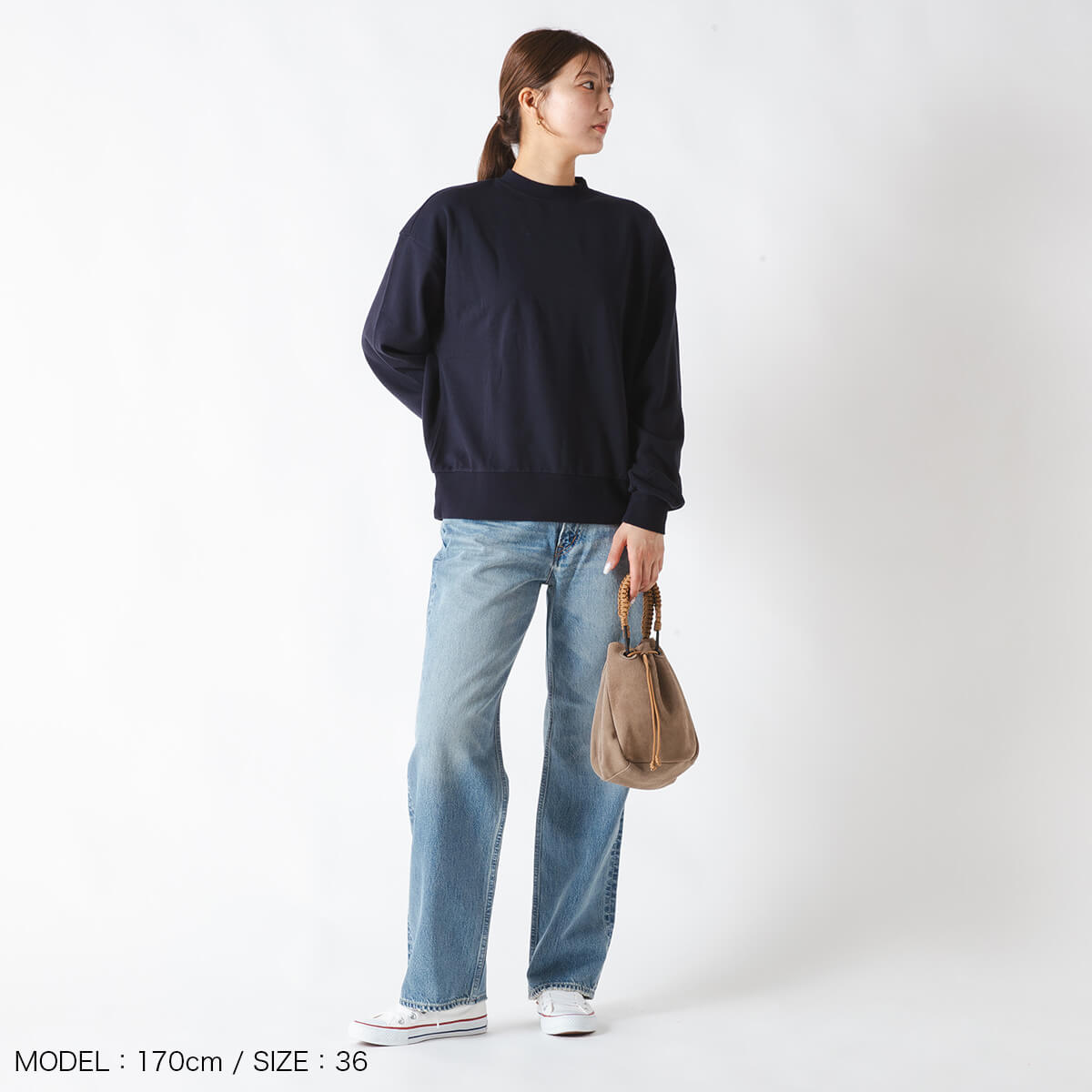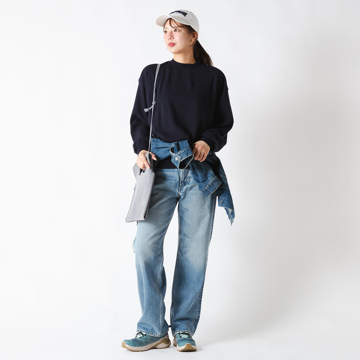 1960年代後半から70年代初頭にかけてのデニム生地を参考に、オーガニックコットンで織り上げた生地を使用しています。メンズライクなデザインながら、丸みを帯びたシルエットが、さりげない女らしさを演出。