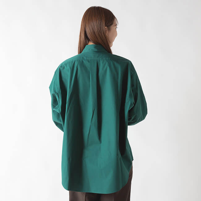 襟部分はこれまでのボタンダウンから仕様をチェンジして、よりミニマルなデザインに。