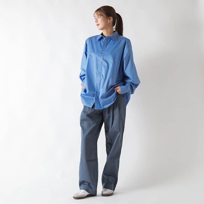 カジュアルにもきれいめにも着回せる、大人のワードローブにぴったりのシャツです。