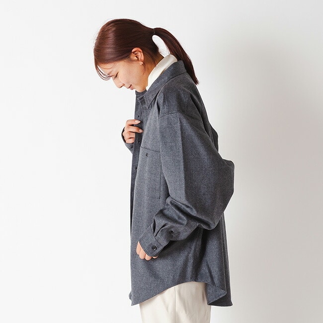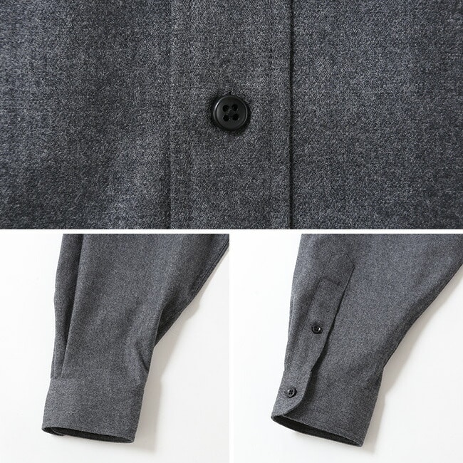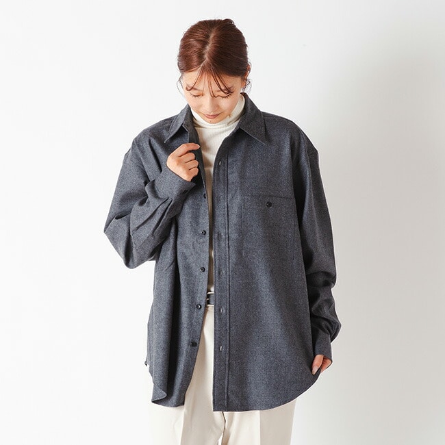 今シーズンは2/60の糸を使用したハリ感を持たせた生地を使用、着用時に立体的なシルエットを生み出します。Made in Japanのクオリティの高さを実感できる便利でシックなオーバーサイズのシャツです。