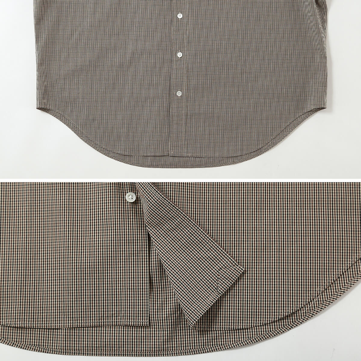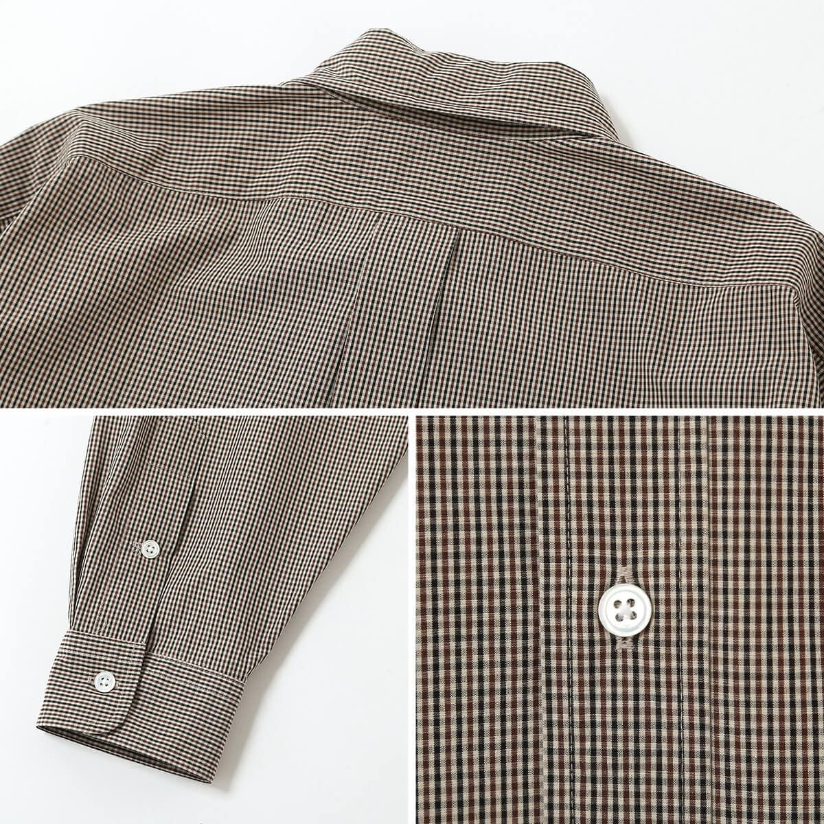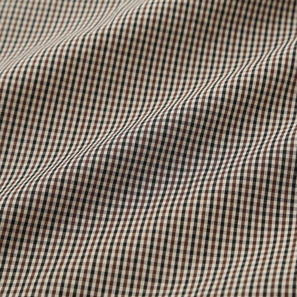 落ち着いたカラーを組み合わせたミニチェック柄。80番手双糸を高密度に織り上げた、シャツ地としてはやや厚みのあるしっかりとした素材を使用しています。