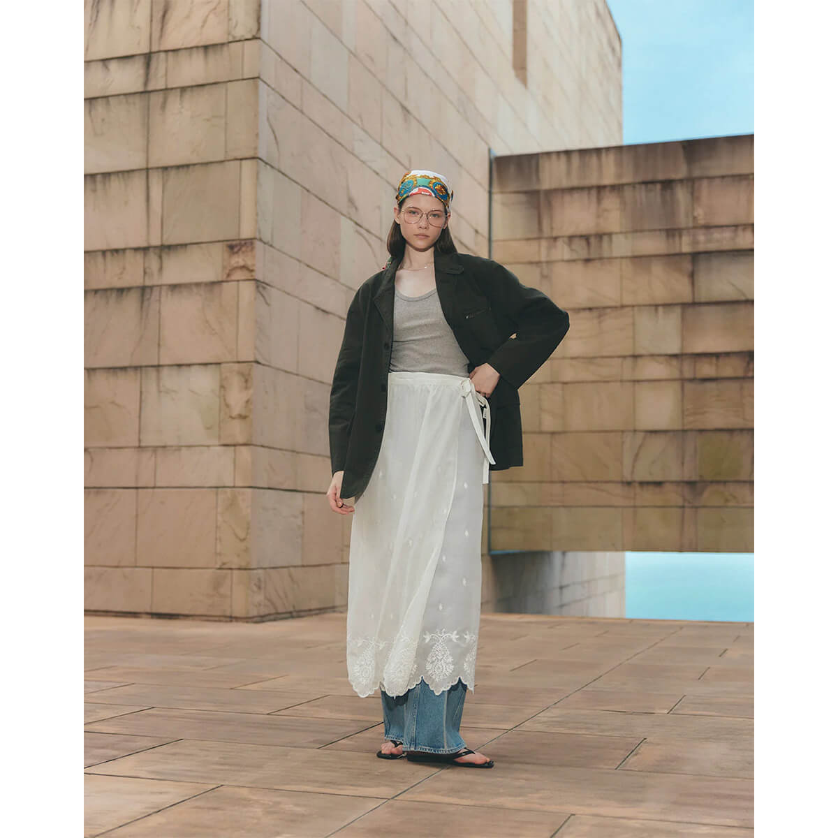 膝で絞ったセミワイドフレアが、美脚効果を生み出します。