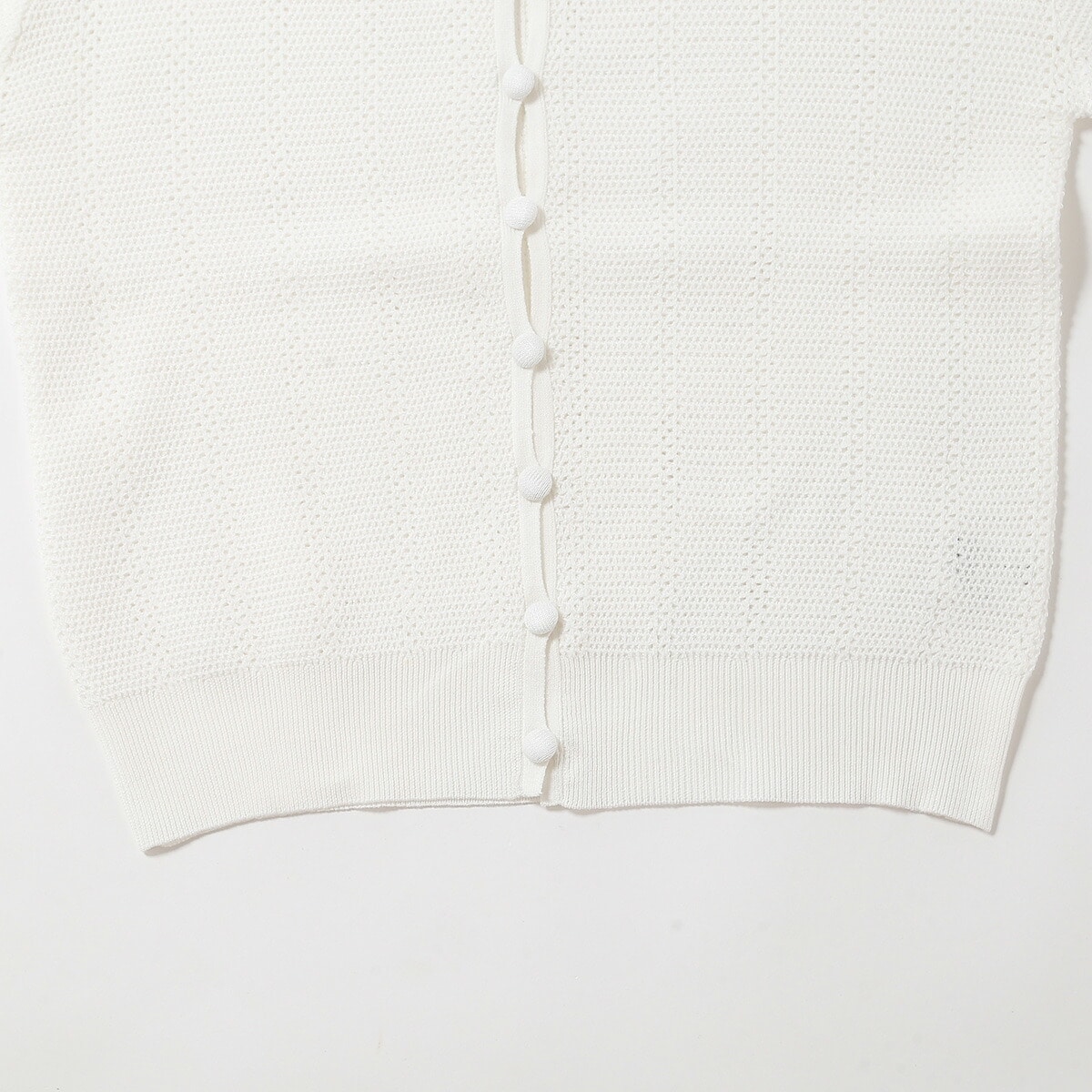 羽織としてはもちろん、ボタンを閉じてトップス感覚でも着用していただける便利なニットです。