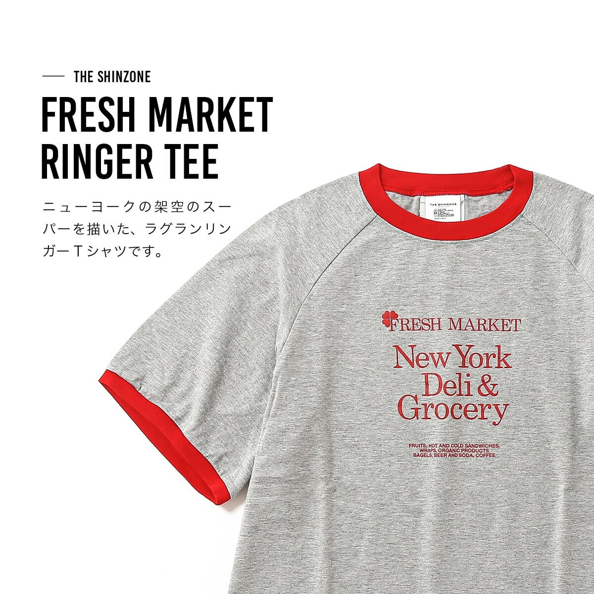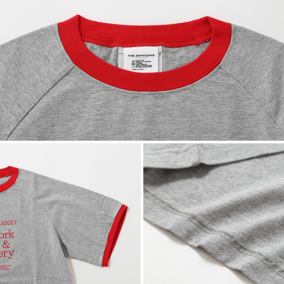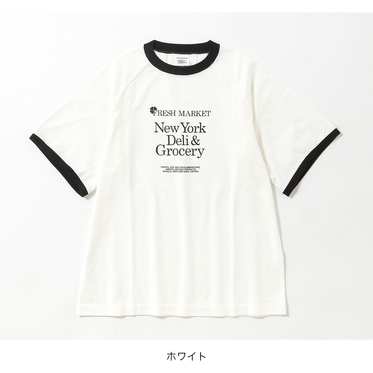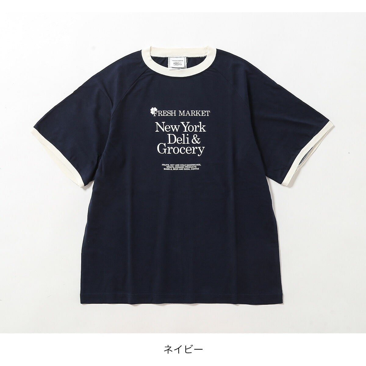 ラグラン切り替えのリンガーTシャツに主人公の地元ニューヨークの架空のスーパーのグラフィックを落とし込んだTシャツです。膨らみのあるしっかりとしたベーシックな40/2天竺を使用しています。