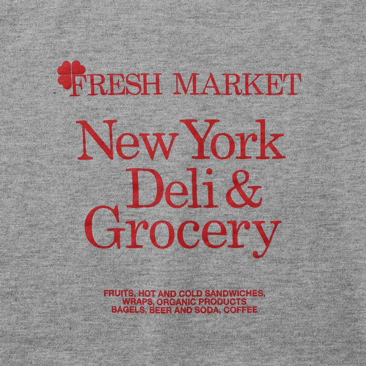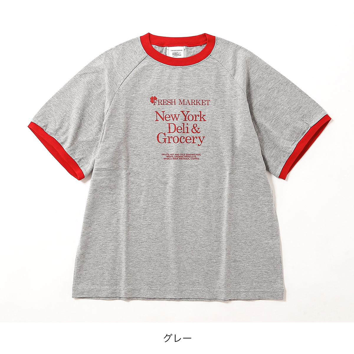 ニューヨークの架空のスーパーを描いた、ラグランリンガーTシャツ