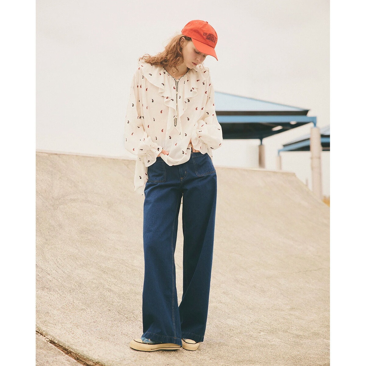 程よくフィットする腰回りと脚のラインを拾いにくいセミワイドシルエット。脚が長く見えるパターンにこだわりました。