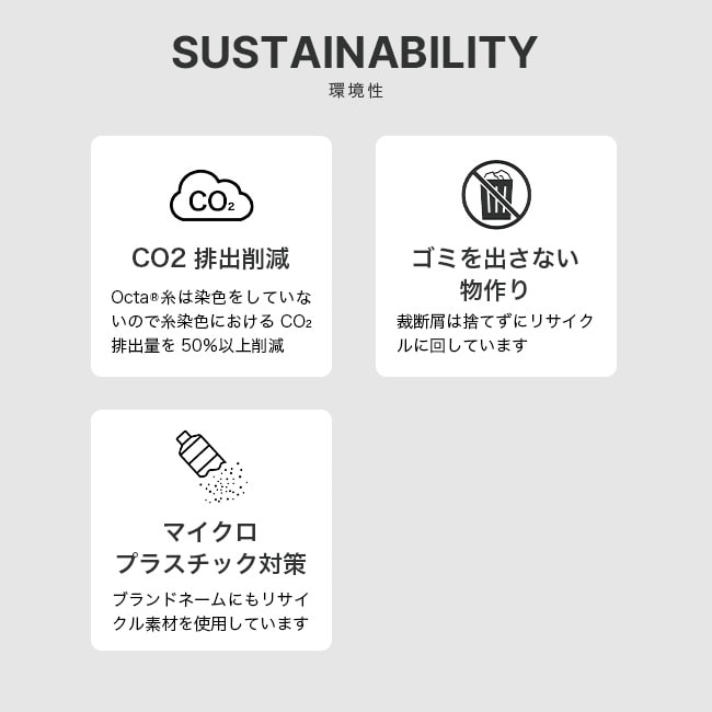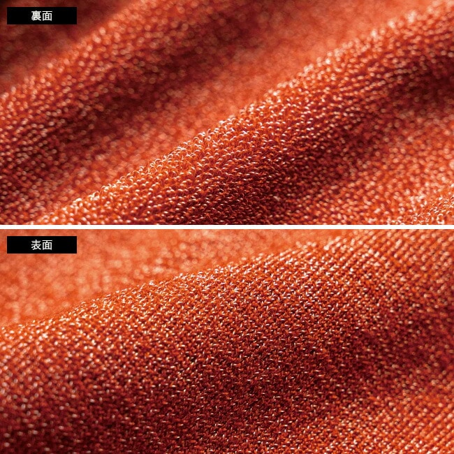 肌面をパイル状にすることにより、肌の接地面積減らし空気層をより多く含むことができる構造になっています。