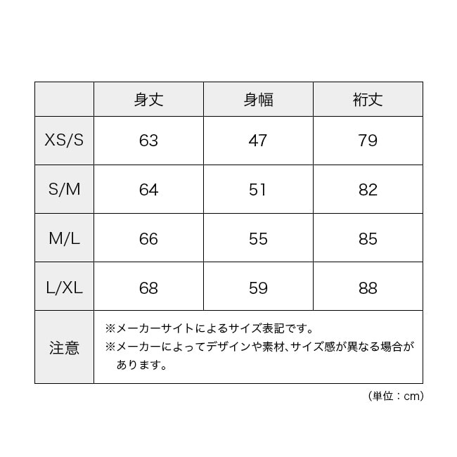 ■サイズ:XS/S,S/M,M/L,L/XL