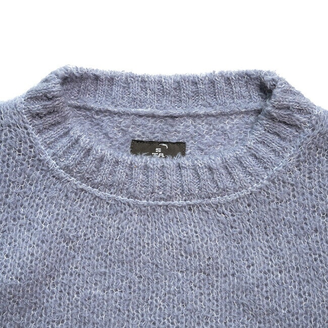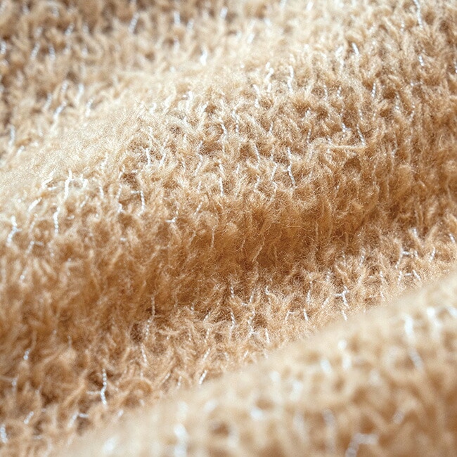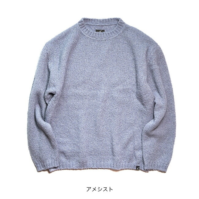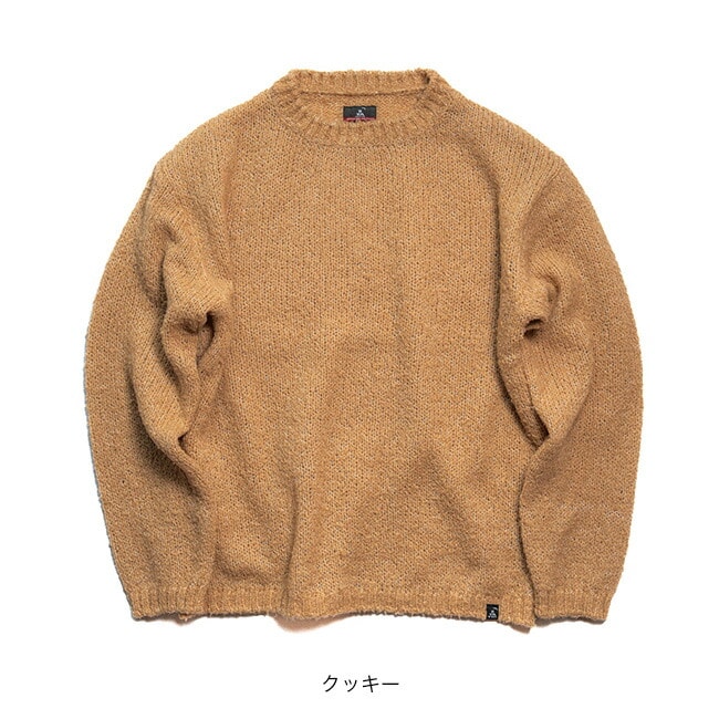 ウール糸には毛足が短く、膨らみと嵩高さに優れたフレンチメリノ主のウールを使用し、暖かさ、軽さ、熱抜け感のバランスを意識した粗めのニットに仕上げています。