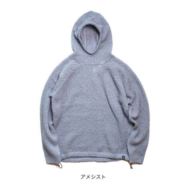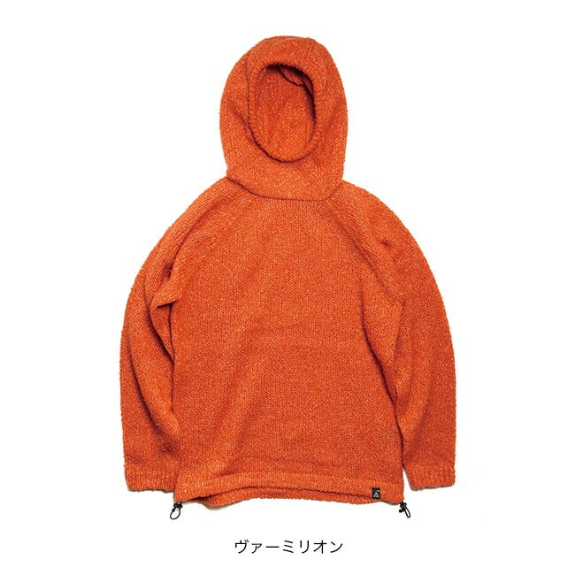 ウール糸には毛足が短く、膨らみと嵩高さに優れたフレンチメリノ主のウールを使用し、暖かさ、軽さ、熱抜け感のバランスを意識した粗めのニットに仕上げています。
