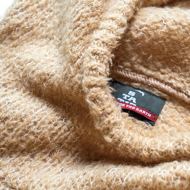 STATICのミッドレイヤーとしては最も高い保温力のニットです。AYUKANをベースに、通常のROARとは違う製法で「Octa®糸に全長1cmほどのウール糸を無数に絡めた特殊糸」を作成。