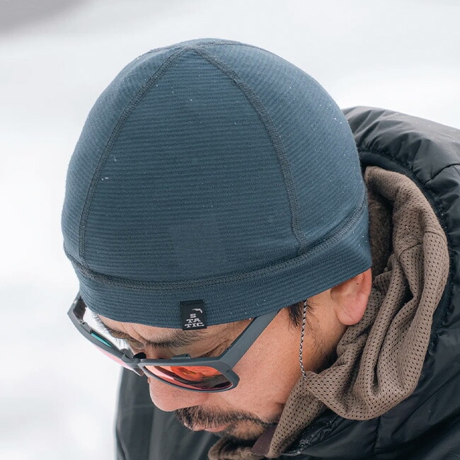フィット感の良いビーニーで、冬季のランニングやヘルメットライナーとして活躍します。凹部は薄く通気性を上げ、行動時でも熱抜けやエアフローが起きやすく必要以上の熱がこもりにくく、凸部はやや地厚となり、肌と接触して汗を吸い上げ、行動前後や休憩時の保温性を確保してくれます。