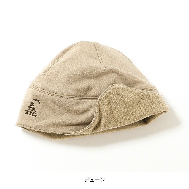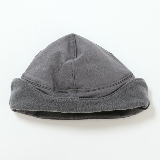 裏起毛ウールの肌触りの良いフラップビーニーです。素材は螺旋状のポリエステルをウールで包んだ混紡糸の起毛なので、化繊とウールの良いとこ取りです。