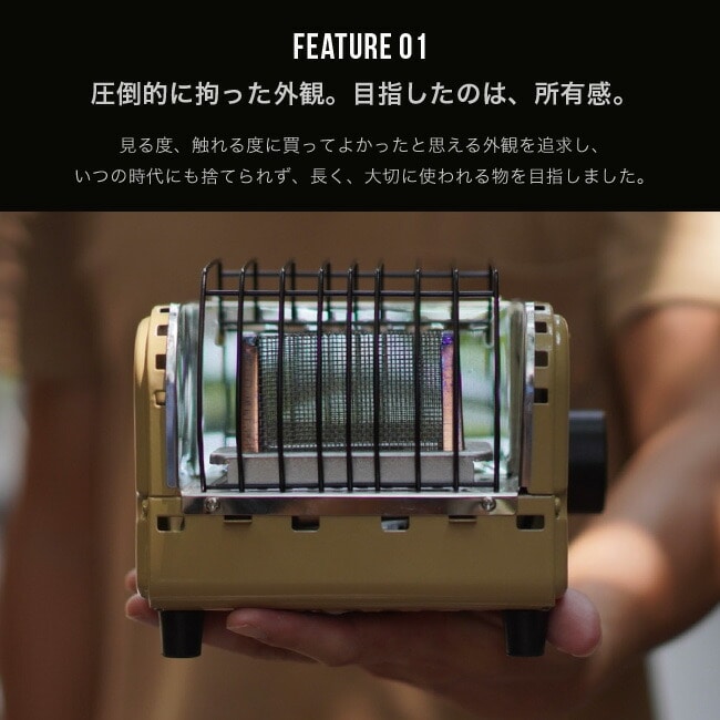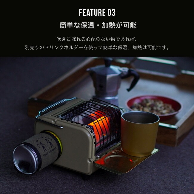 世界一小さくてカッコ良いガスボンベヒーターを目指して生まれたプロジェクトから誕生した本製品は、点火からわずか3秒で瞬時に暖かさを実感でき、場所を選ばず使える手軽さが魅力です。ドリンクホルダーを装着すれば、缶コーヒーなどの飲み物を温めることも可能で、不意の寒ささえ心地よく感じさせてくれます。
