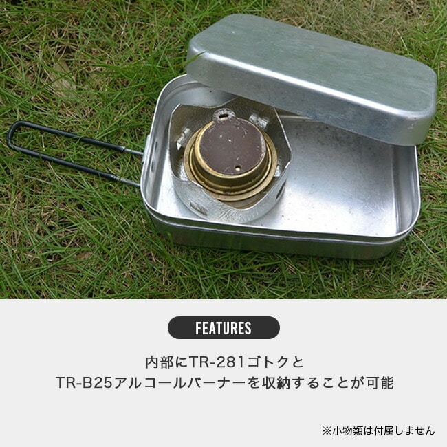 小物入れやランチボックスとしても便利です。熱伝導率の高いアルミ製のため、熱が全体に回り、アルコールバーナーでもごはんが大変美味しく炊けます。